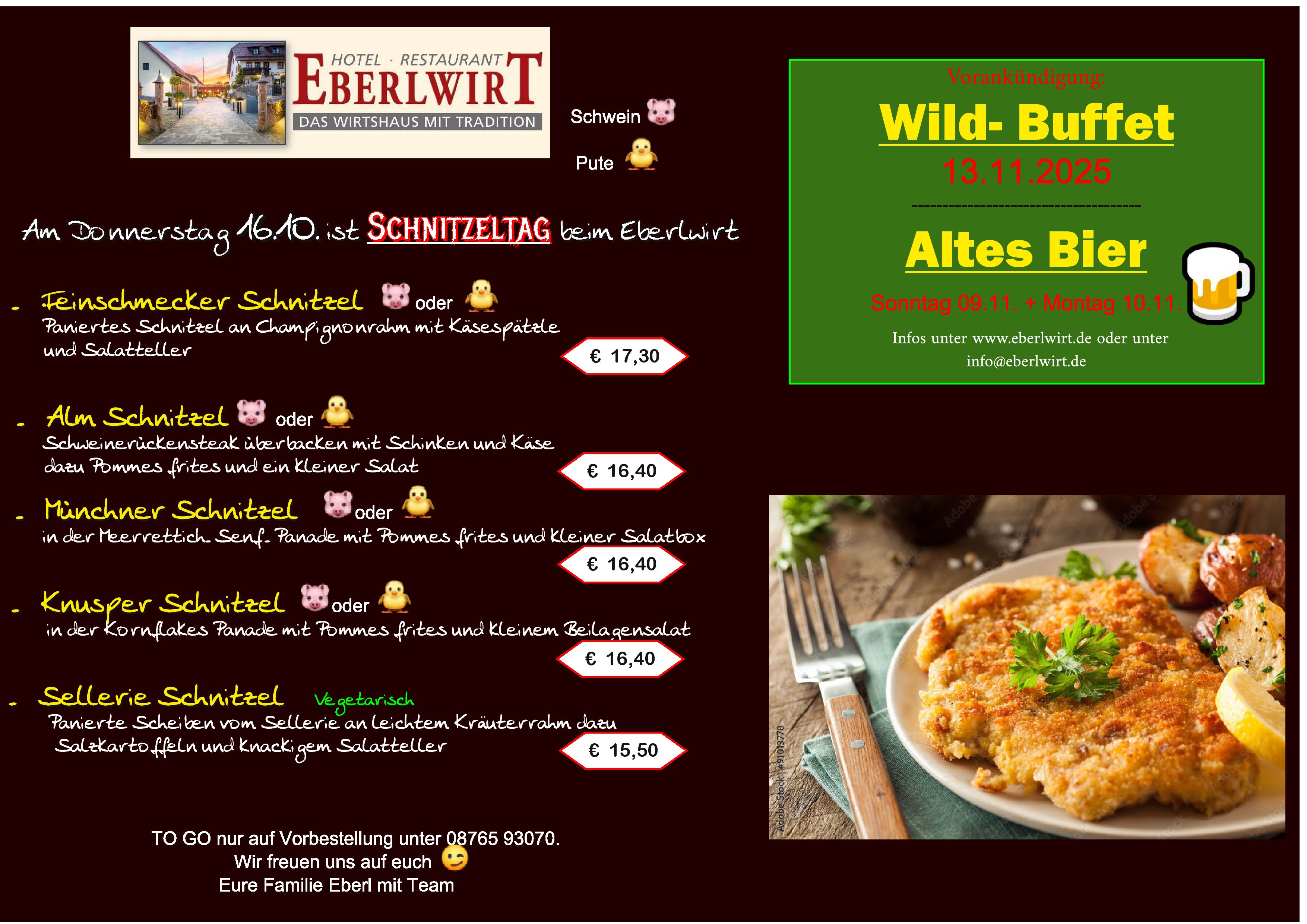 Für Fragen stehen wir Ihnen jederzeit gerne zur Verfügung! Erreichen können Sie uns telefonisch unter 08765/93070, oder per Email(info@eberlwirt.de).